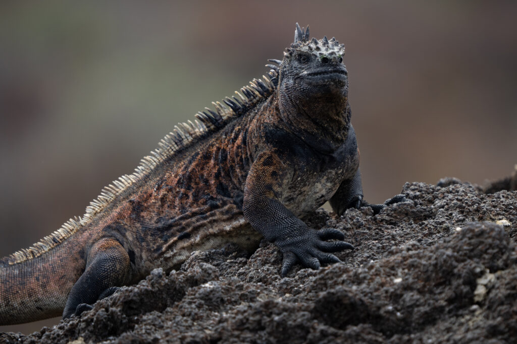 The first rule with marine iguanas is simple. Get low. Lower than you think. Eye level matters here more than with almost any other Galapagos animal. From above, they look like reptiles sunning themselves. From eye level, they look like ancient Godzillas. Watch behavior before lifting the camera. When they are cold, they stack tightly and barely move. When they warm up, heads lift, bodies separate, and interactions happen. This is when the photographs improve.