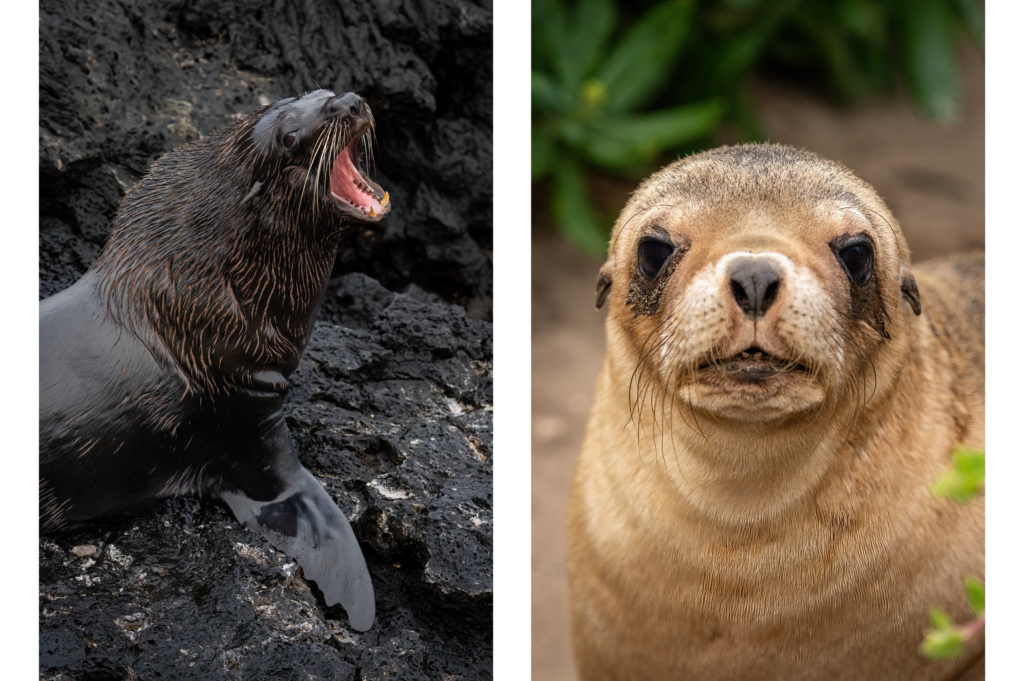 Galapagos Fur Seals are particularly good portrait subjects. Dark eyes, thick fur, and an almost brooding demeanor make them feel ancient and watchful. Australia Sea Lions bring something quieter and more introspective to the frame.